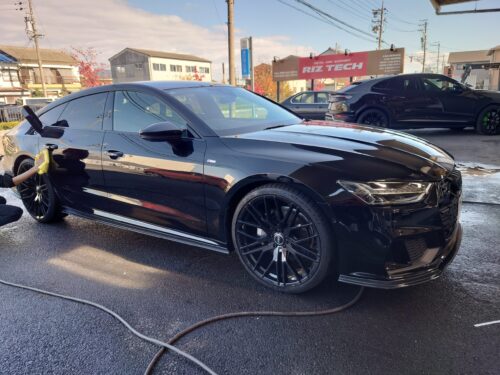 岐阜 アウディA7 事故修理/岐阜市 板金塗装 輸入車/アウディA7 スポーツバック 右側面 修理/アルミパネル 板金 岐阜/エーミング 作業 岐阜/ホイール修理 22インチ 鍛造/ボディコーティング 事故修理後