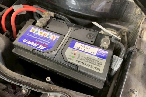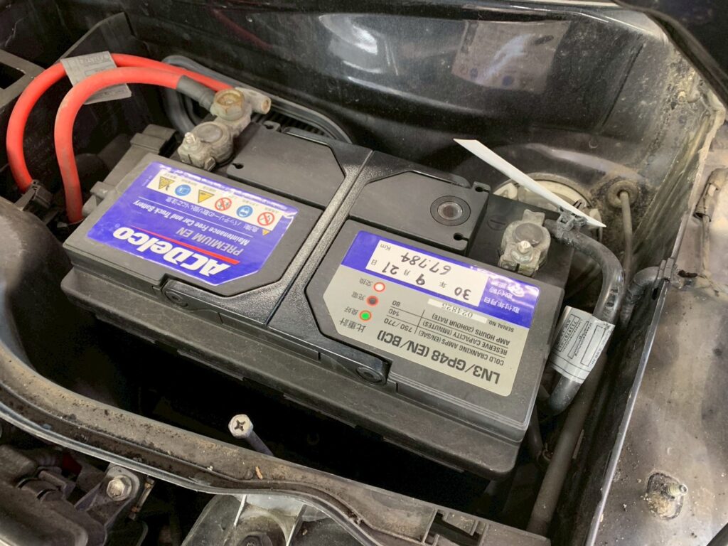 「エンジンがかからない」とのことでご入庫いただきました。点検を実施した結果、バッテリーの経年劣化による著しい電圧・CCA(コールドクランキングアンペア)の低下が原因と判明しました。