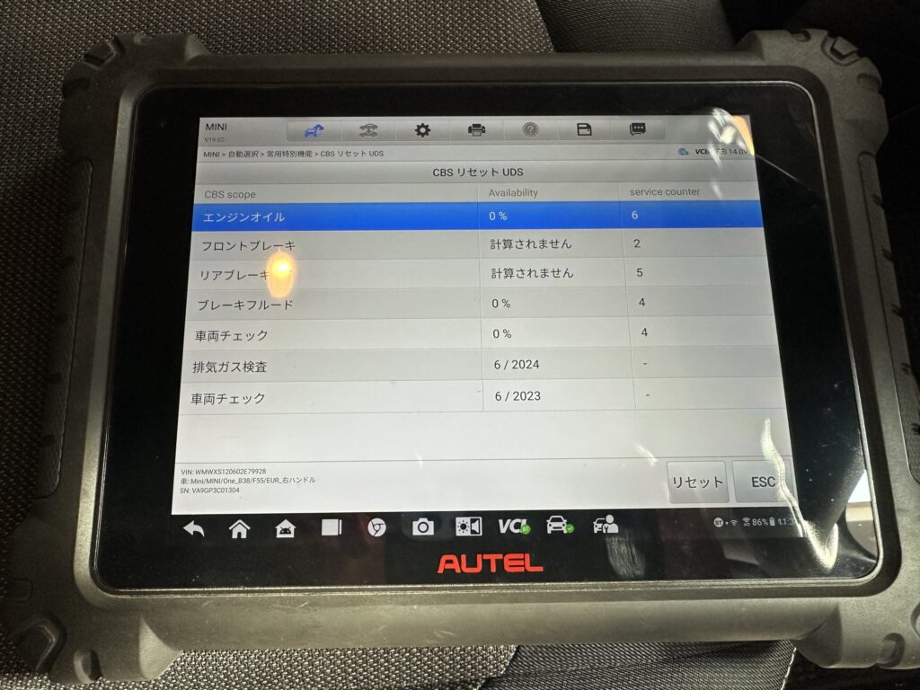 - 診断機によるサービスリマインダーリセット