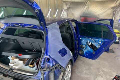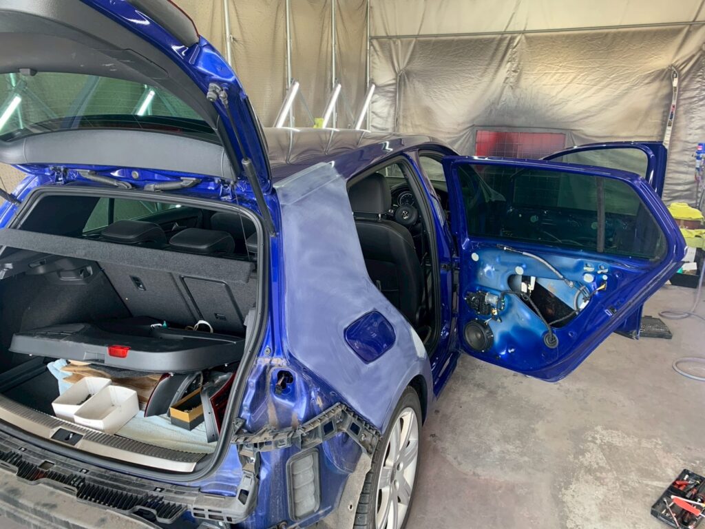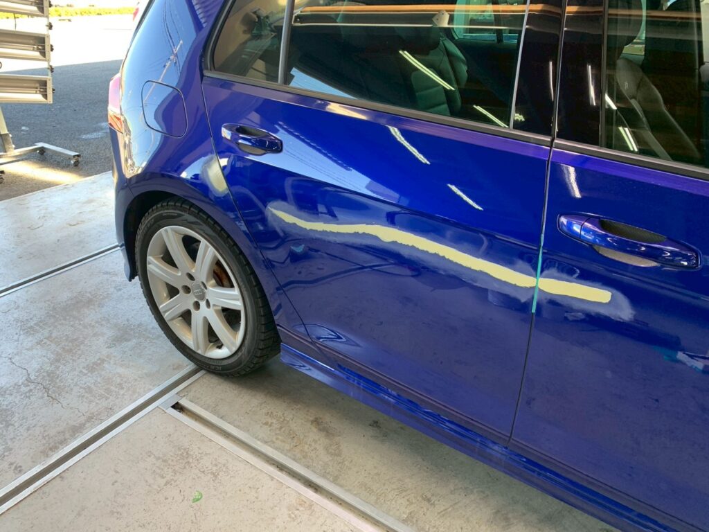 【岐阜県羽島市】VW ゴルフR (AUCJXF) 右側面・保険修理による鈑金塗装