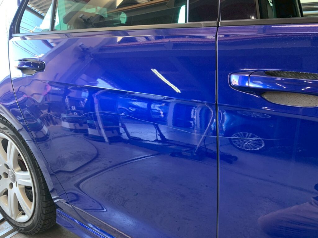 今回は右側面の広範囲にわたる傷・凹みの修復と塗装を行いました。主な作業内容は以下の通りです。