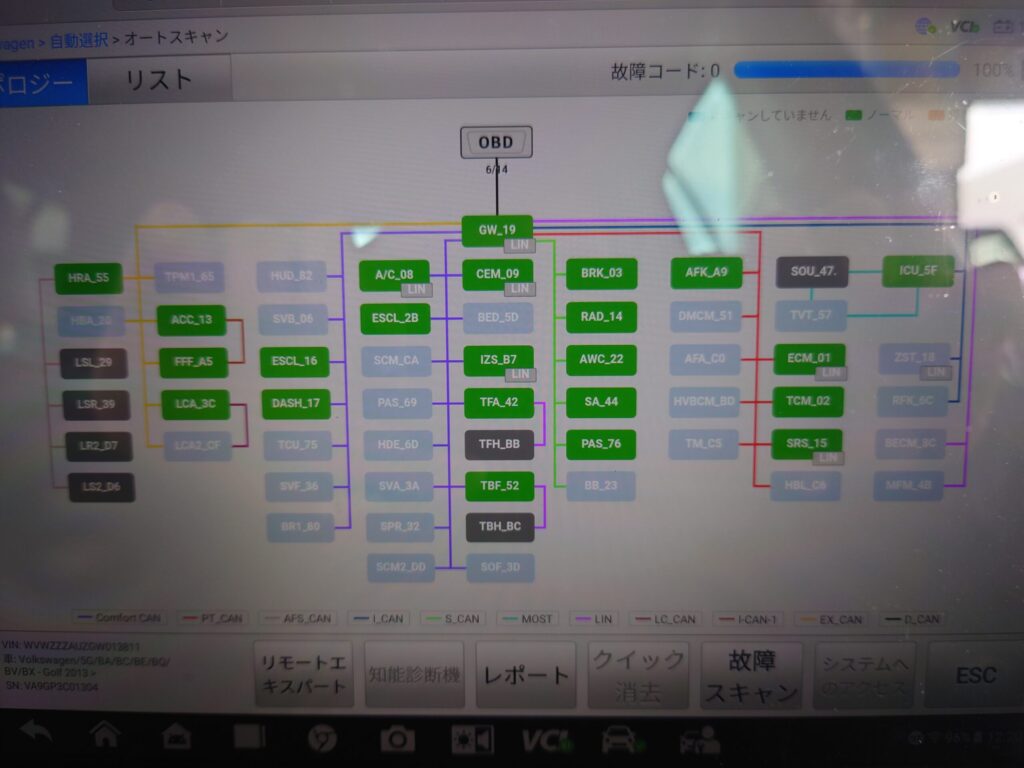 最近の輸入車は、バンパーやドアの脱着を行うだけでセンサー類が反応し、システム上にエラーコードが残ってしまうことがあります。 RIZTECHでは、物理的な修復が終わった後、専用のテスターを接続して車両のコンピューター診断を実施しています。今回も無事にエラーコードの消去作業を行い、システム上も完全に問題がない状態でお客様へご納車させていただきました。