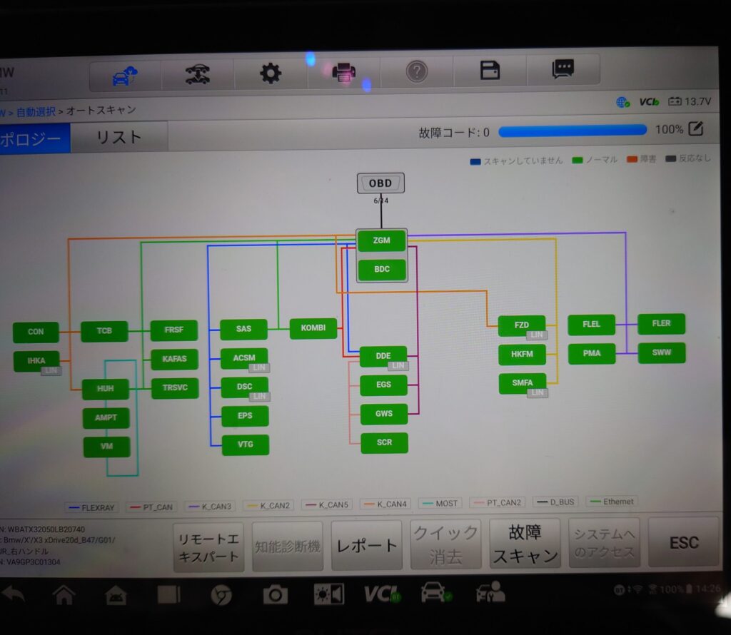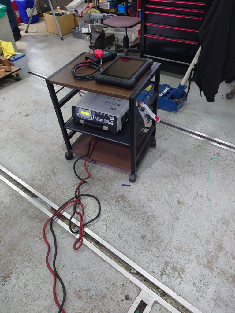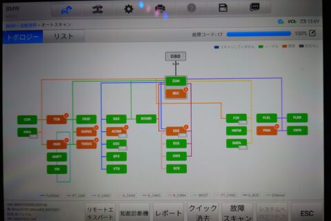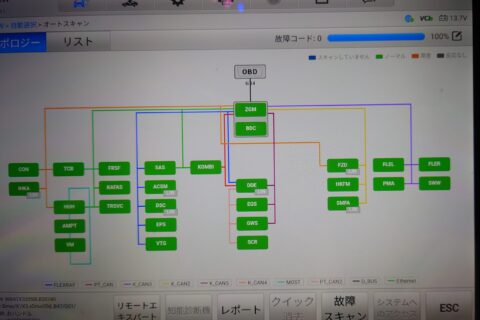 専用診断機によるエラーコード消去 すべての部品を元通りに組み付けた後、車両に診断機を接続します。脱着に伴うエラーコードや過去のシステムエラーを確実に消去し、正常に作動しているか最終チェックを行います。