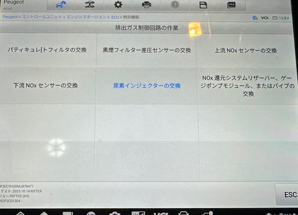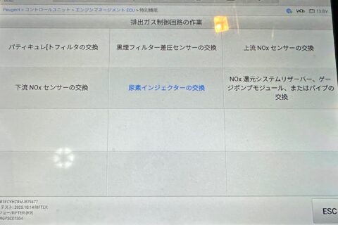 配線やカプラーの接触不良、アドブルータンク側の不具合がないかも併せて確認し、今回は「アドブルーインジェクター本体不良」が疑われる状態でした。