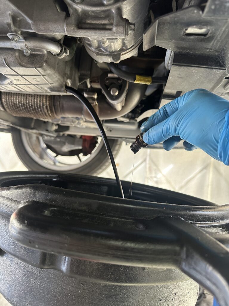 高性能なエンジンには、それにふさわしいハイスペックなエンジンオイルが不可欠です! 今回使用したのは**「MOTUL 8100 X-CESS GEN2 5W-40」**。当店が自信を持っておすすめする、欧州メーカーの厳しい認証規格を多数クリアした100%化学合成油です。優れた油膜保持性能で、AMGの高回転域でもエンジンを熱や摩擦からしっかりと保護します。