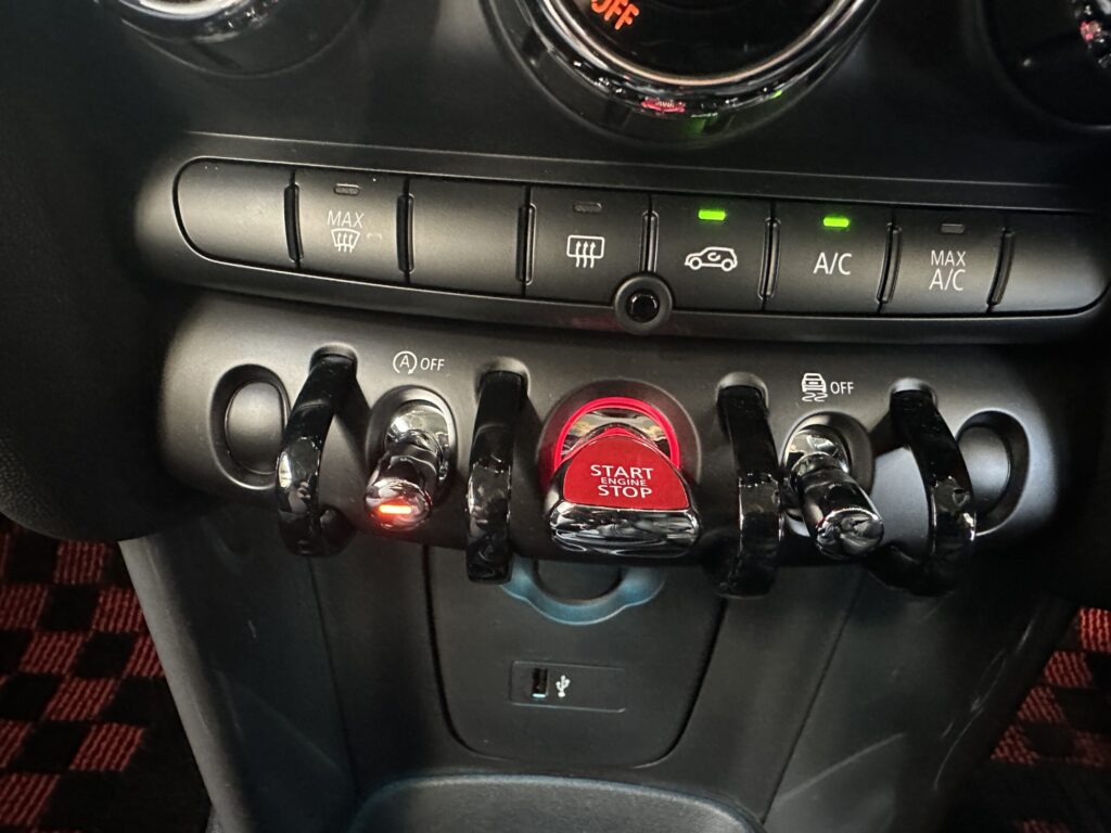 近年のミニクーパーはエンジン始動時に自動で アイドリングストップがON になる仕様です。