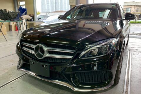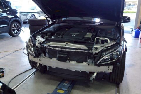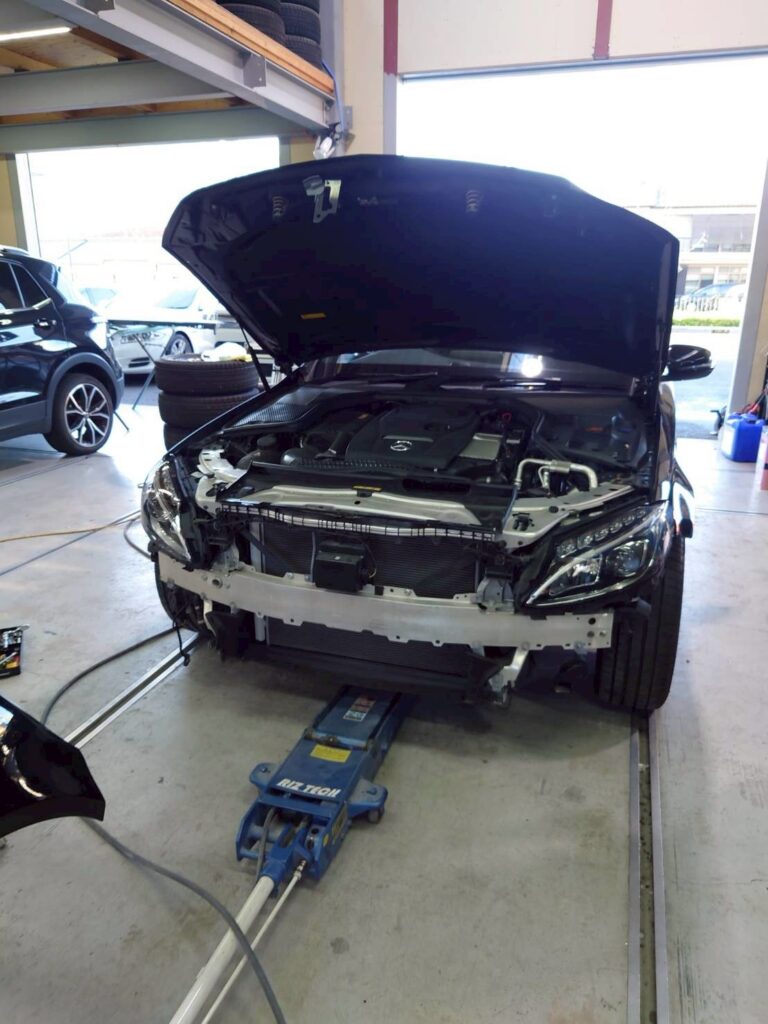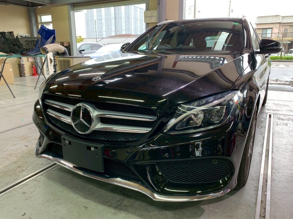 【メルセデス・ベンツ C180】前回り事故修理・板金塗装作業を実施しました!
