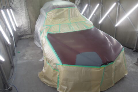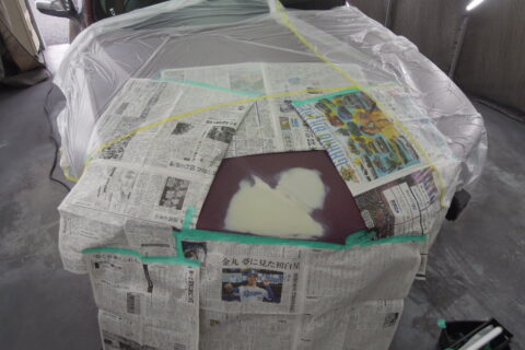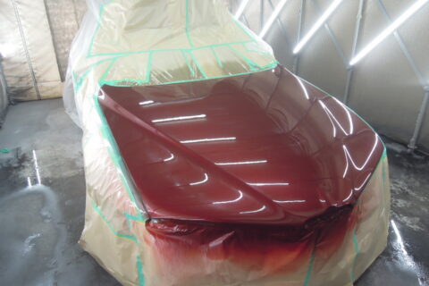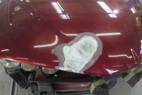 ボンネットフードは、へこみ・歪みをしっかり修正してから塗装へ進みます。