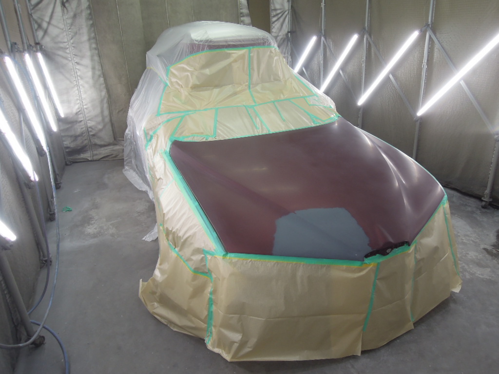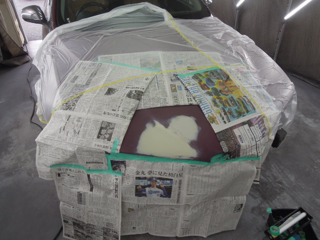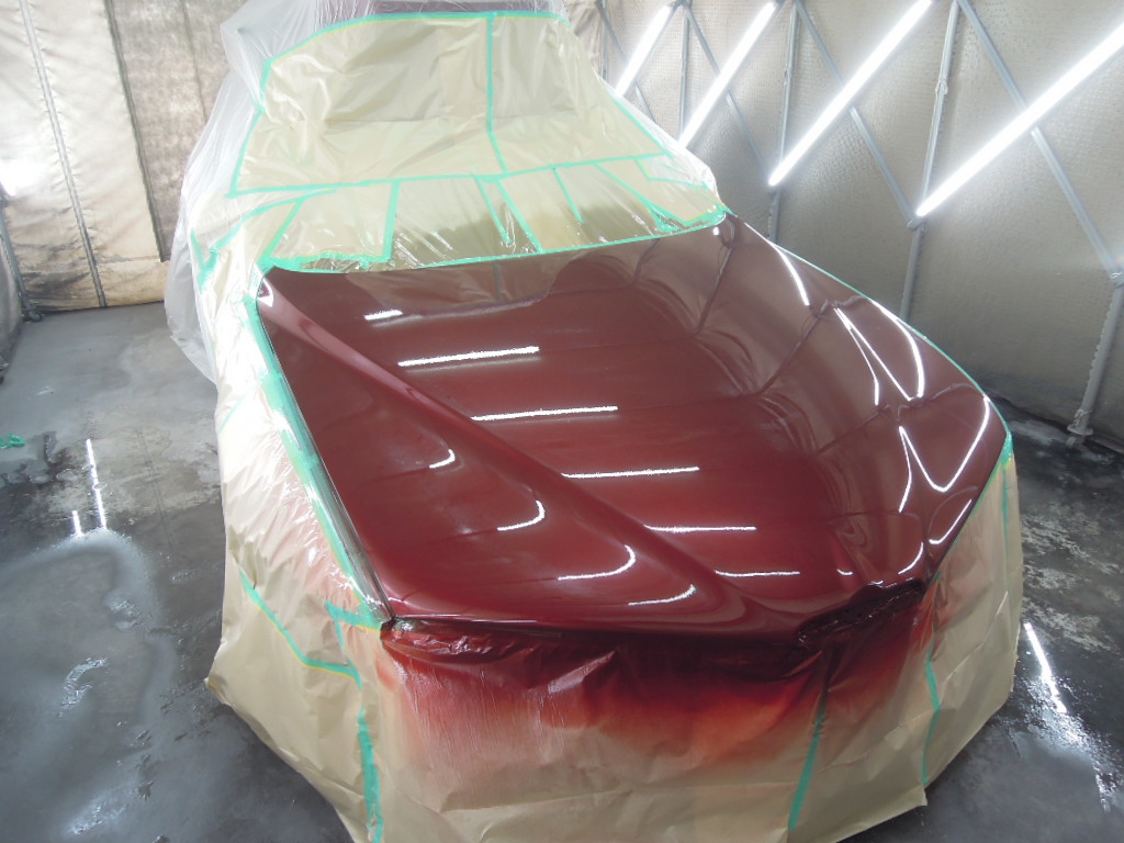 ボンネットフードは、へこみ・歪みをしっかり修正してから塗装へ進みます。